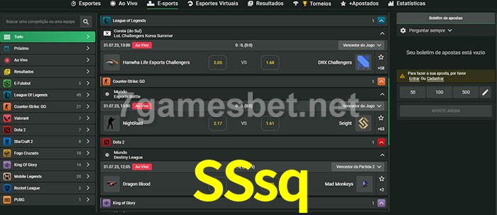 O SSsq oferece uma grande seleção de opções de apostas em e-sports com probabilidades competitivas